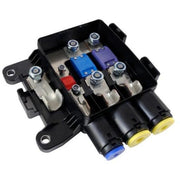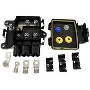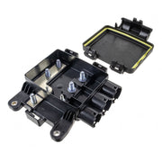 A waterproof fuse holder for one (1) MegaVAL and one (1) MidiVAL. This version includes a cover protect the fuses and the feed stud.