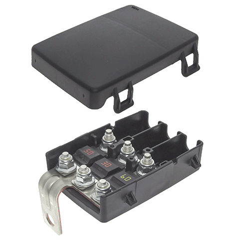 MTAA waterproof fuse holder for a two MegaVAL or PowerVAL fuses. This version includes a cover with a gasket to seal the fuse compartment. Specificati...
