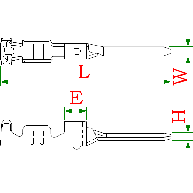 Dimensions: L:15.2 mm / W:0.8 mm / H: 0.64 mm / E: 2 mm