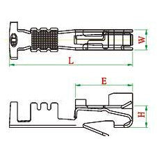 Dimensions: L: 14.0 mm / W: 2.25 mm / H: 2.5 mm / E: 6.5 mm